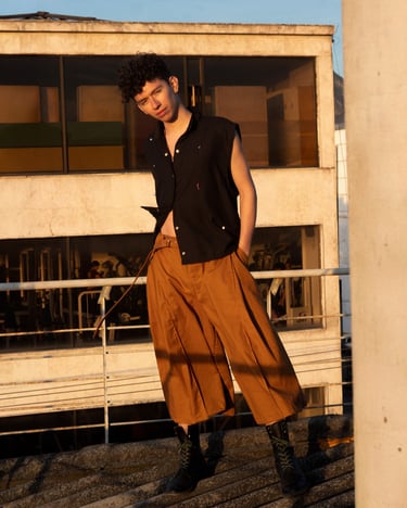 Bajo la premisa “Lo salvaje aparece cuando nadie mira”, la propuesta construye un guardarropa base de líneas depuradas que funciona como escenario para intervenciones más expresivas. Bordados, ilustraciones y gestos manuales introducen lo orgánico, lo indómito y lo punk en piezas pensadas para habitar lo cotidiano. Nada es decorativo; cada elemento responde a un territorio, a una tensión entre contención y desborde.