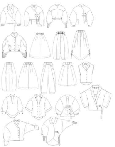 Desarrollo de un sistema de diseño base que permita diferentes intervenciones de bordados, apliques o estampados. Estás piezas están pensadas para el uso diario.